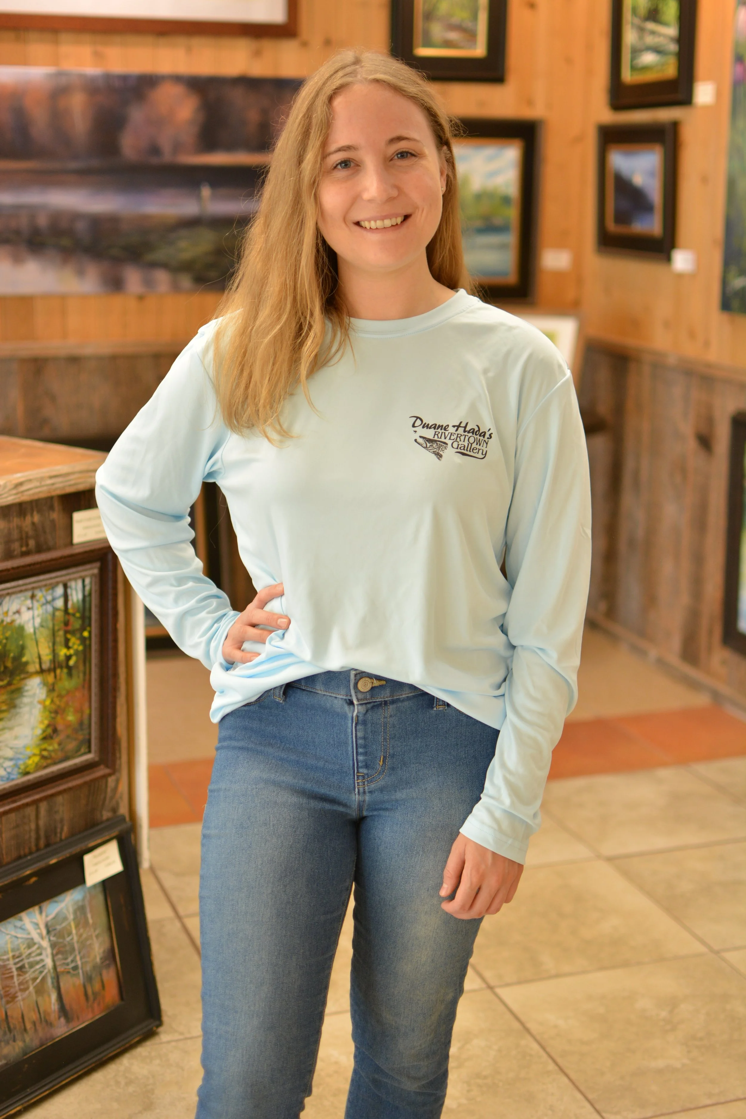 A Sandstone Comfort Colors T, soft and easy-going, sports Duane Hada's Grand Slam Stack. Each trout pops agains the background, showing off the unique color patters of of our beautiful White River trout. "I feel great achievement when I paint from the passion of my own heart and others identify with my efforts to capture a special time and place." Duane Hada, artist & angler
