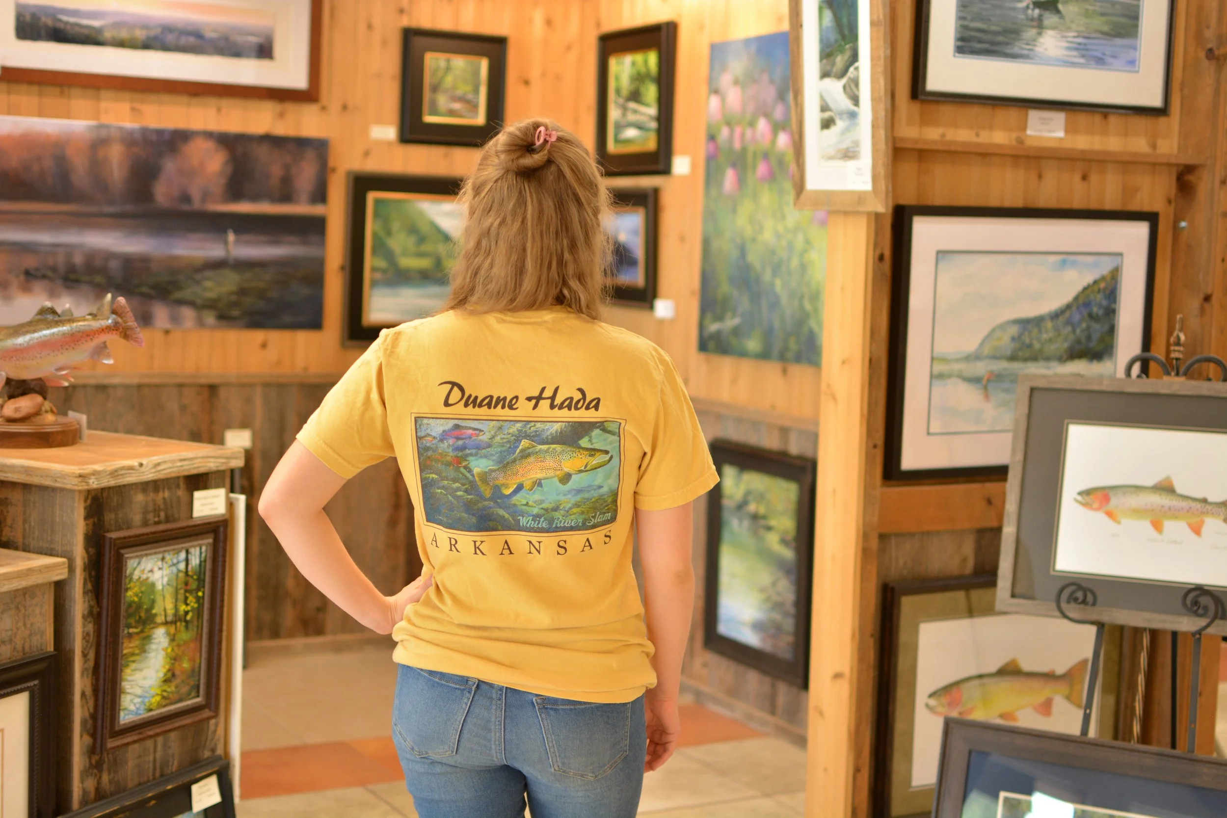 A vibrant portrait of 4 White River Trout stands out on this Seafoam lightweight fishing shirt, perfect for a day in the wilderness or on the river in any season!